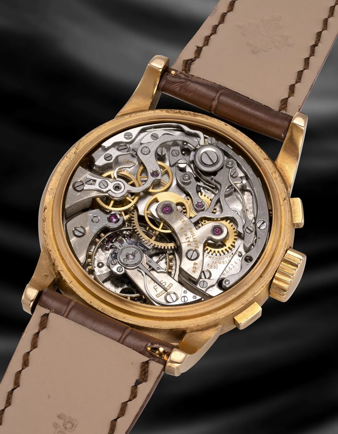 百达翡丽,型号2499第一代玫瑰金万年历计时腕表背面,1951年制