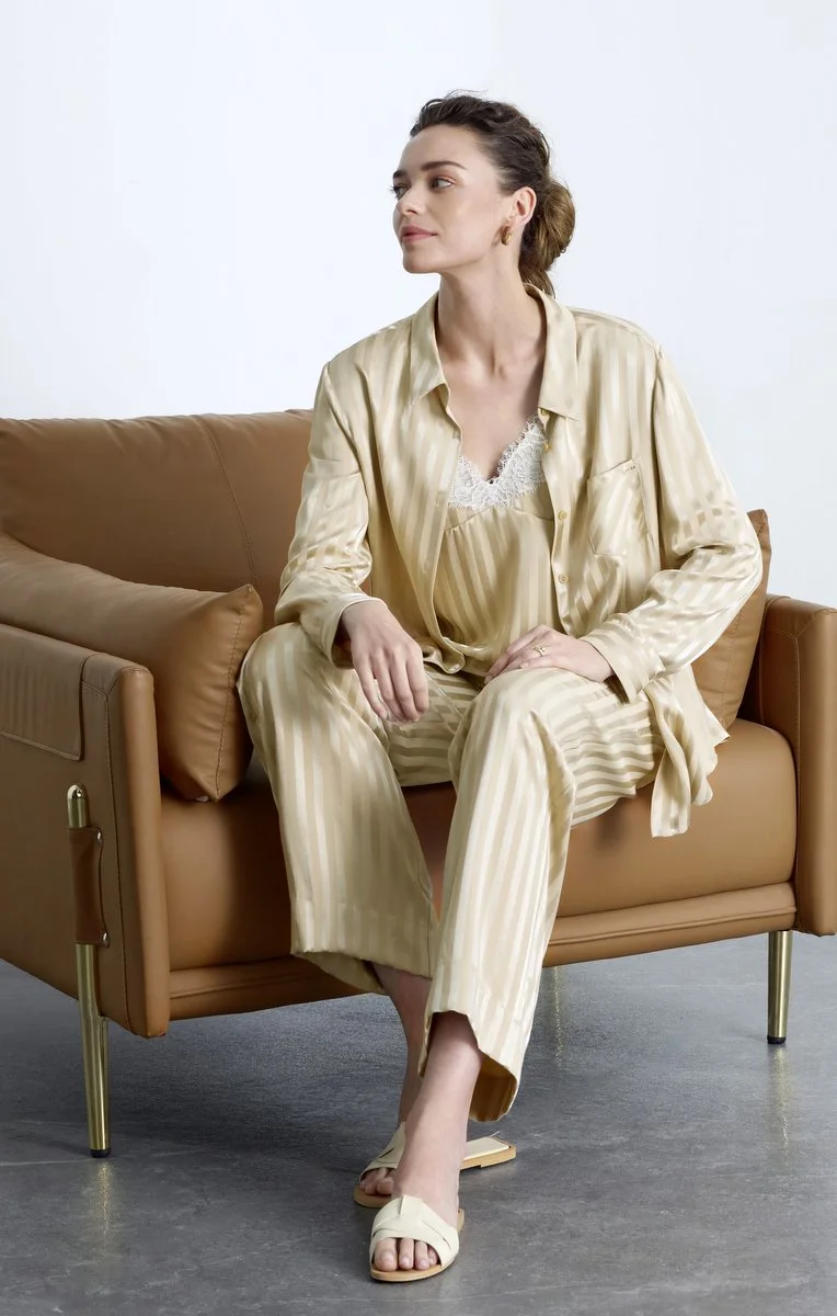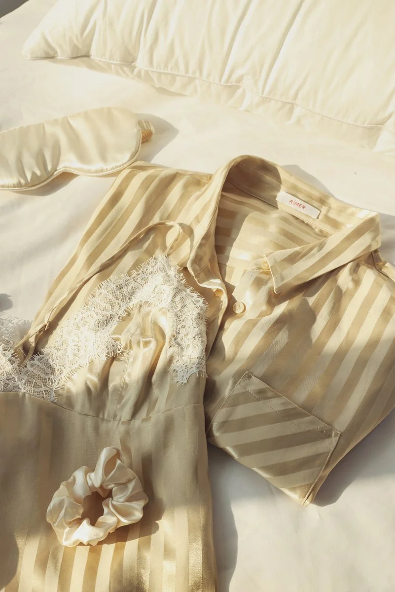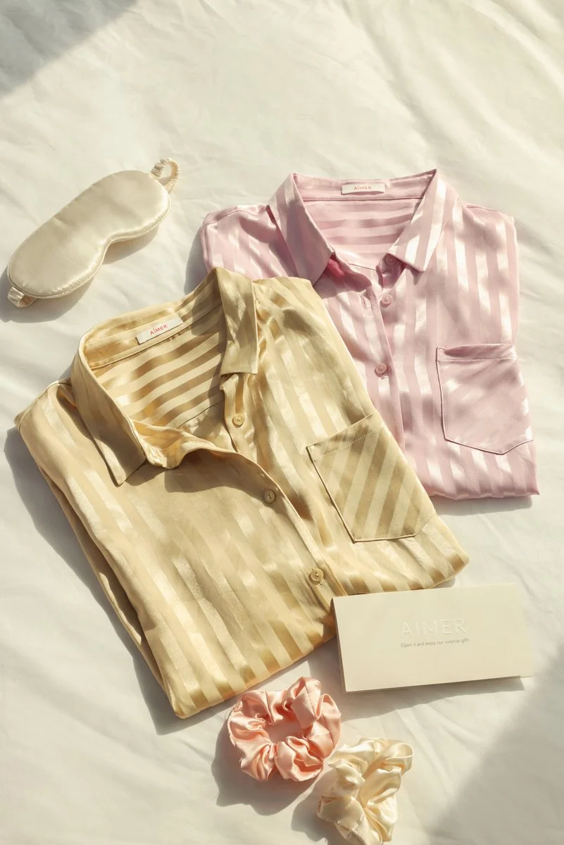以“绸缎”为灵感,AIMER 以精致细腻的织造与柔美线条打造长袖家居礼服套装 - 既是舒适睡衣,也是节日夜晚的优雅庆祝。光泽如星子落在身侧,让冬夜的宁静、亲密与温暖都有了可以穿上的形状。