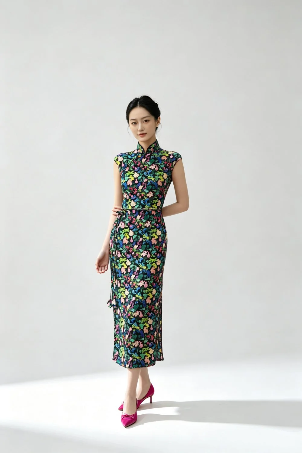 旗袍的表达变得克制而干净,吊带裙则让这种带有天然光泽的面料呈现出意想不到的轻松感。